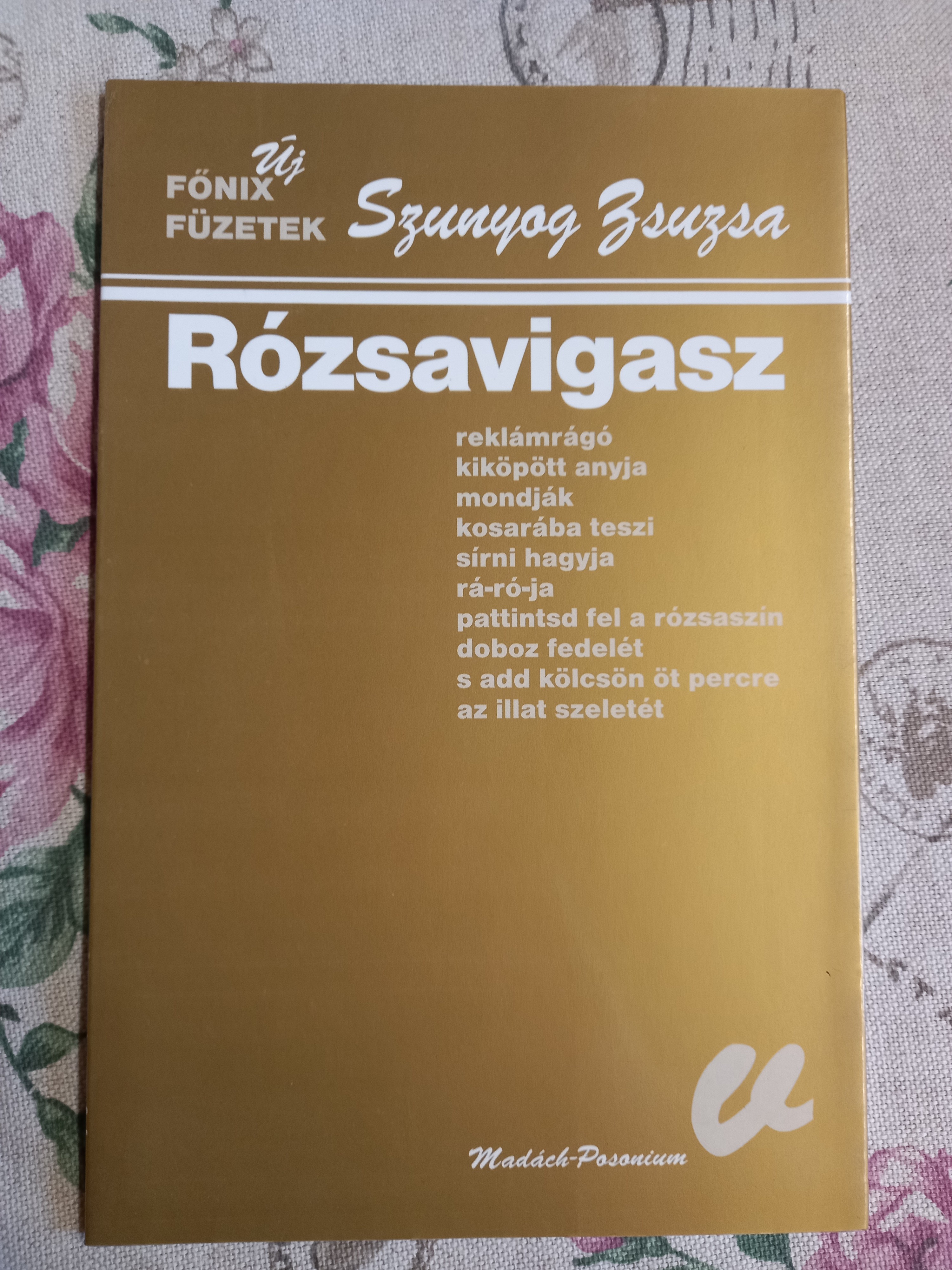 RózsavigaszSzerző: Szunyog ZsuzsaKiadó: Madách- PosoniumKiadás ideje: 2005Állapot: újRaktáron2.50 € Mennyiség * FacebookHasonló termékekHídTemesi Ferenc5.00 €9.00 €PorTemesi Ferenc12.00 €25.00 €SzínművekGyurkovics Tibor12.00 €30.10 €Ők is boldogan éltek? A férfi változatMagyar irodalom - 21. századi enciklopédia7.00 €12.50 €A napisten fiaiHunyady József4.00 €HajdútáncSzántó György8.00 €Oszlopos Simeon, Az elveszett paradicsom, A gyávaSarkadi Imre3.00 €A néma leventeTamási ÁronBródy SándorMolnár FerencHeltai JenőFüst Milán3.00 €Válogatott versekJózsef Attila3.00 €Szerző: Szunyog ZsuzsaKiadó: Madách- PosoniumKiadás ideje: 2005Kiadás helye: BratislavaNyelv: MagyarÁllapot: újKötés: puhatáblás kötésMéret: A5Oldalszám: 50Súly: 0.10 kg